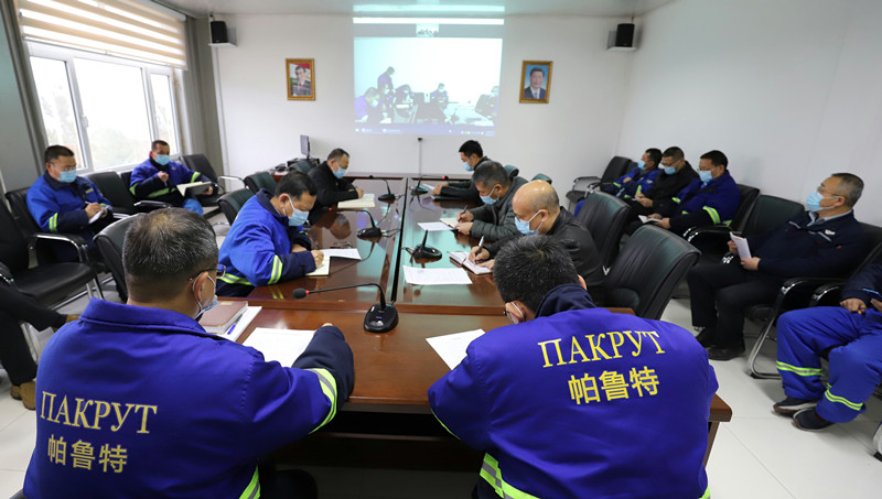 會議首先再次深入學習了集團公司董事長奚正平關于加強境外企業(yè)常態(tài)化疫情防控工作的指示精神以及常青副總經理關于做好海外疫情防控的工作要求。帕魯特現場防疫負責人介紹了當前國際國內及塔吉克疫情趨勢,分析了公司防疫形勢,并就當前疫情防控工作進行了安排。中色國礦總經理張輝對公司疫情防控工作提出了具體要求。