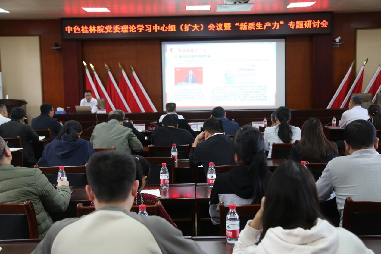 為進(jìn)一步激發(fā)科技創(chuàng)新活力,堅(jiān)持以科技創(chuàng)新引領(lǐng)發(fā)展新質(zhì)生產(chǎn)力,推動(dòng)企業(yè)不斷開(kāi)辟高質(zhì)量發(fā)展新領(lǐng)域新賽道,3月29日,中國(guó)有色桂林礦產(chǎn)地質(zhì)研究院有限公司(簡(jiǎn)稱:中色桂林院)召開(kāi)黨委理論學(xué)習(xí)中心組(擴(kuò)大)學(xué)習(xí)會(huì)議暨“新質(zhì)生產(chǎn)力”專題研討會(huì),深入學(xué)習(xí)貫徹習(xí)近平總書(shū)記關(guān)于新質(zhì)生產(chǎn)力的重要論述,圍繞“如何加快培育和形成新質(zhì)生產(chǎn)力,增強(qiáng)發(fā)展新動(dòng)能”開(kāi)展研討交流。中色桂林院黨委書(shū)記、董事長(zhǎng)、總經(jīng)理?xiàng)顕?guó)高出席會(huì)議并講話,黨委委員、副總經(jīng)理胡喬帆主持會(huì)議并作中心發(fā)言。