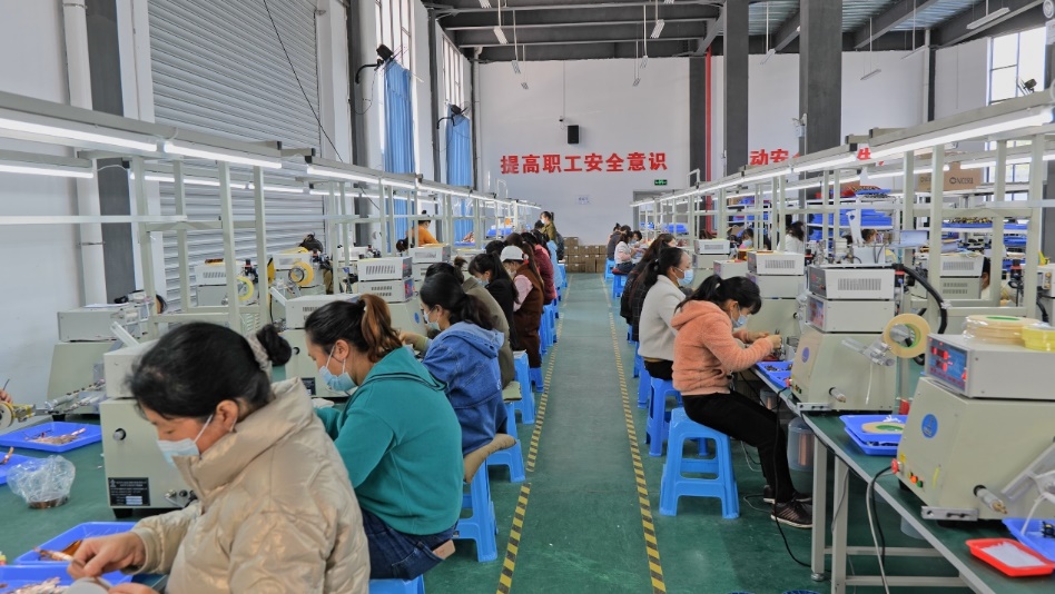 聚緣村是梁河縣農(nóng)戶來(lái)源最廣泛、建檔立卡戶占比最高的易地搬遷新村,安置了全縣9個(gè)鄉(xiāng)鎮(zhèn)易地搬遷群眾190戶768人,建檔立卡戶占比73%。習(xí)近平總書記強(qiáng)調(diào):“樂(lè)業(yè)才能安居,解決好就業(yè)問(wèn)題,才能確保搬遷群眾穩(wěn)得住、逐步能致富,防止返貧。”為擴(kuò)展聚緣村搬遷群眾的收入來(lái)源,中國(guó)有色集團(tuán)投資265萬(wàn)元幫扶扶貧車間一座,引入電子器件裝配加工企業(yè)和農(nóng)業(yè)公司,投入資金對(duì)車間脫貧員工進(jìn)行上崗培訓(xùn),實(shí)現(xiàn)了搬遷勞動(dòng)力家門口就業(yè)。楊國(guó)敏已連續(xù)多月蟬聯(lián)生產(chǎn)效率榜榜首,工資每月最高可以拿到4千多,她一邊熟練地組裝著手里的器件,一邊說(shuō)道:“在搬遷之前我就發(fā)愁以后要怎么謀生,沒(méi)想到幫扶單位中國(guó)有色集團(tuán)早為我們謀劃好了工作問(wèn)題,通過(guò)參加組織的培訓(xùn),提高了技能熟練度,在家門口從農(nóng)民變成了藍(lán)領(lǐng)工人,現(xiàn)在車間的員工人均每月都能拿到3000多的工資。”