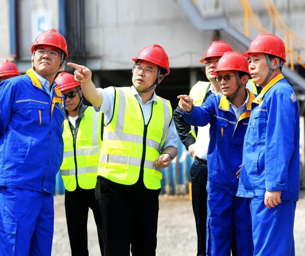 在謙比希銅冶煉,奚正平董事長一行參觀公司展廳、辦公區(qū),現(xiàn)場調研熔煉分廠轉爐渣臨時存放點、銅產品堆場和3號陽極爐,邊調研、邊提問、邊指導,就公司如何踐行“1+4”發(fā)展戰(zhàn)略提出了具體工作意見。