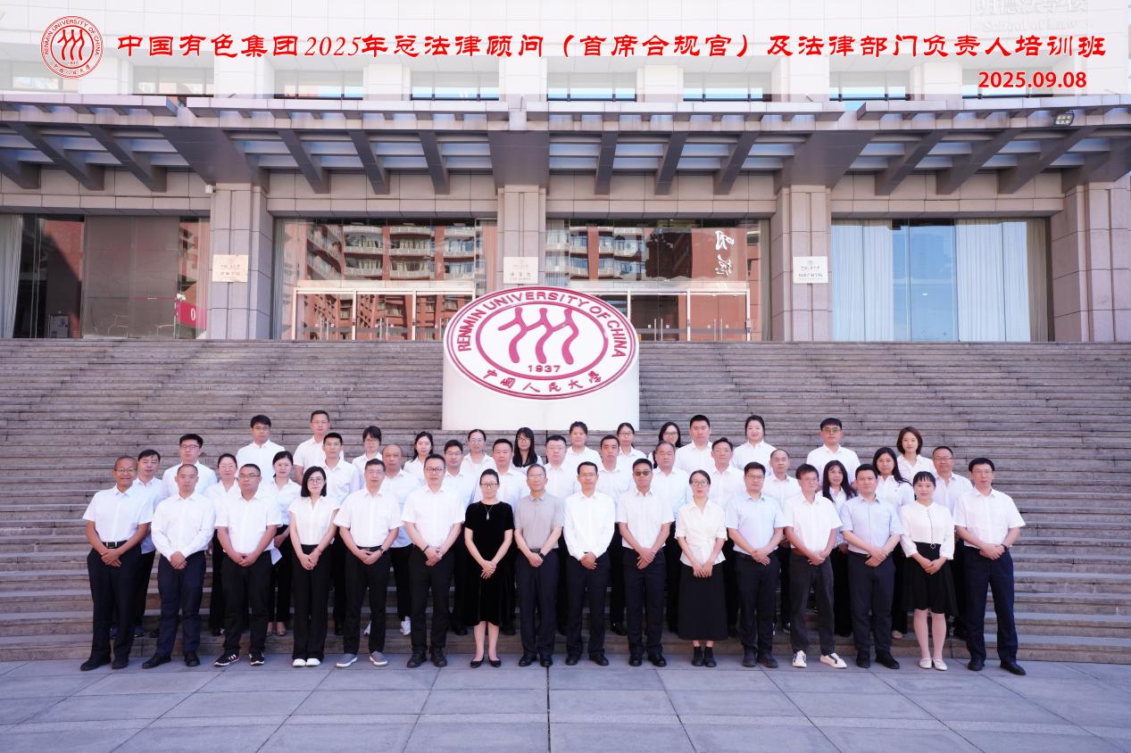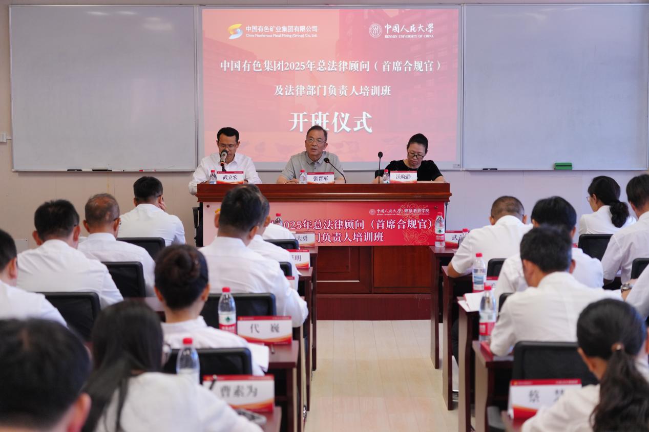 9月8日,中國(guó)有色集團(tuán)2025年總法律顧問(wèn)(首席合規(guī)官)及法律部門負(fù)責(zé)人培訓(xùn)班在中國(guó)人民大學(xué)正式開班。中國(guó)人民大學(xué)法學(xué)院黨委書記沃曉靜出席并致辭。集團(tuán)公司黨委副書記、總經(jīng)理張晉軍出席開班儀式并講話。