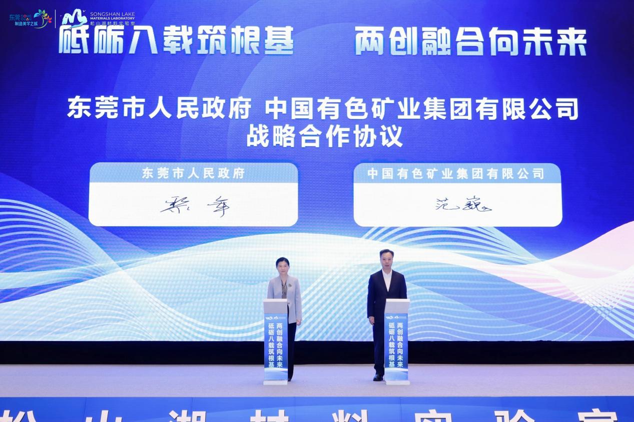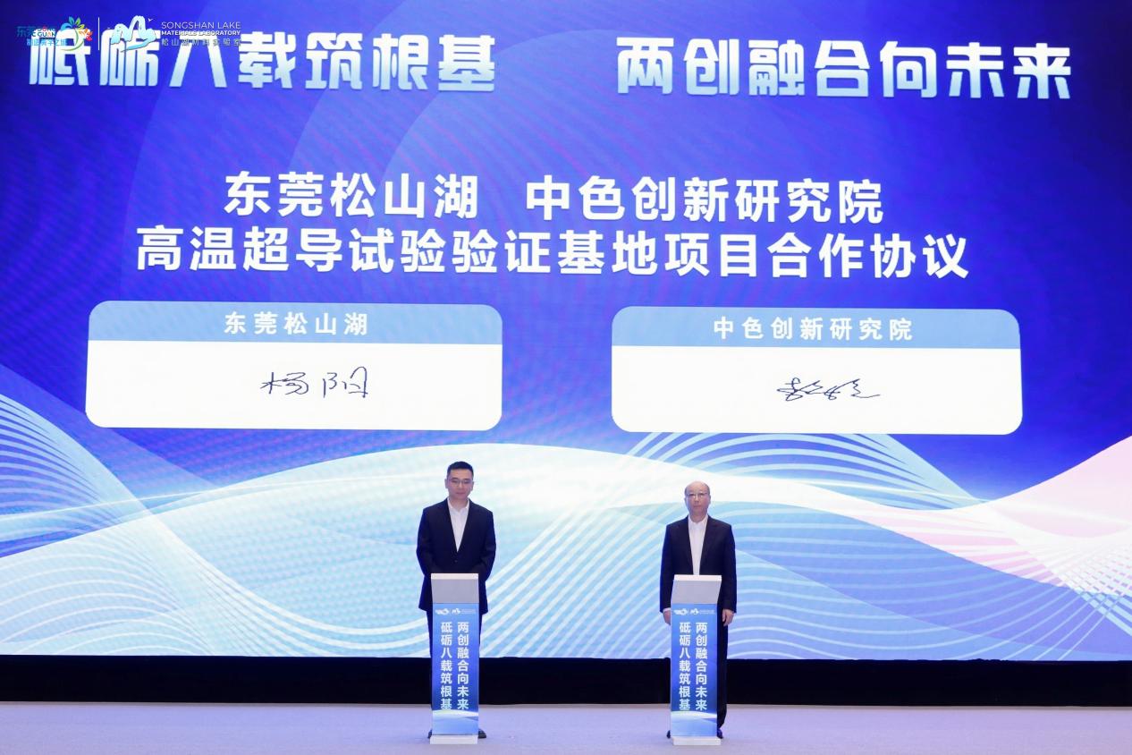 大會上,文崗和東莞市委書記韋皓共同為中色創(chuàng)新研究院東莞松山湖分院揭牌。會上還簽訂了《東莞市人民政府中國有色礦業(yè)集團有限公司戰(zhàn)略合作協(xié)議》和《東莞松山湖中色創(chuàng)新研究院高溫超導試驗驗證基地項目合作協(xié)議》。