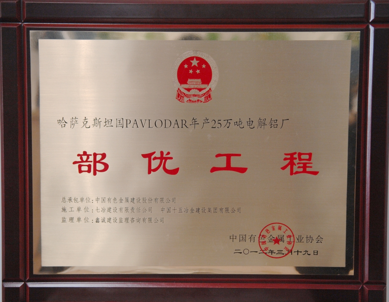 Four of NFC's projects,including the Kazakhstan Pavlodar 250kta aluminum smelter project with NFC as EPC contractor, won the 2011 China Nonferrous Metals Industry (ministerial) Quality Engineering Awards on 19th March, 2012. These projects are designed by NFC's secondary companies, China Nerin Engineering Co. Ltd (Nerin) and Northeastern University Engineering&Research Institute Co., Ltd.(NEUI).