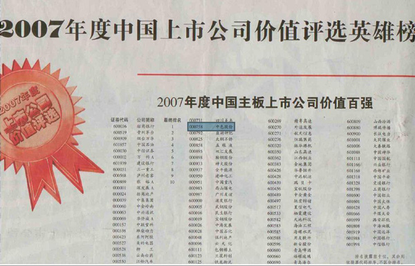 近日,在《證券時(shí)報(bào)》與南方基金聯(lián)合舉辦的“2007年度中國(guó)上市公司價(jià)值評(píng)選”活動(dòng)中,中色股份榮登2007年度中國(guó)主板上市公司價(jià)值百?gòu)?qiáng)榜,連續(xù)兩年入選年度中國(guó)主板上市公司價(jià)值百?gòu)?qiáng)。