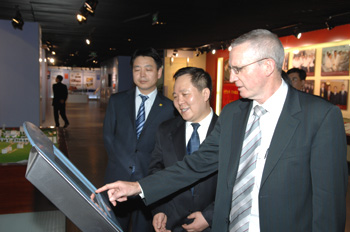 此后,王宏前總經(jīng)理、馬金平副總經(jīng)理邀請莫里亞提先生一行參觀了中國有色集團(tuán)展廳,莫里亞提先生興致勃勃的聽取了王宏前總經(jīng)理的介紹,驚嘆于中國有色集團(tuán)及中色股份歷年來創(chuàng)造出的驚人業(yè)績,對中色股份的海外建設(shè)及投資項(xiàng)目尤為關(guān)心不時(shí)提出自己感興趣的問題與王宏前總經(jīng)理進(jìn)行交流,參觀即將結(jié)束時(shí)莫里亞提先生在留言簿上寫到:正因你們擁有優(yōu)秀而敬業(yè)的管理層及員工,我們未來的合作必將更加美好!