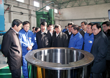 趙長(zhǎng)義主任十分關(guān)注沈冶機(jī)械的發(fā)展,親切詢問(wèn)了沈冶機(jī)械老領(lǐng)導(dǎo)的健康情況,詳細(xì)了解沈冶機(jī)械2010年生產(chǎn)經(jīng)營(yíng)情況和未來(lái)三年發(fā)展規(guī)劃。他指出,沈冶機(jī)械研制的大型油膜軸承,曾替代進(jìn)口,并榮獲國(guó)家質(zhì)量金獎(jiǎng),制鋁設(shè)備和隔膜泵產(chǎn)品都成為世界級(jí)的產(chǎn)品,特別是制鋁設(shè)備和冶礦設(shè)備走出國(guó)門,出口份額達(dá)到29%。這些好的產(chǎn)品和好的市場(chǎng),為企業(yè)做強(qiáng)做大奠定了堅(jiān)實(shí)基礎(chǔ)。他希望,沈冶機(jī)械再接再厲,轉(zhuǎn)變發(fā)展方式,調(diào)整產(chǎn)品結(jié)構(gòu),搭建合作平臺(tái),加大投資改造力度,提高裝備水平,為沈陽(yáng)裝備制造業(yè)的振興作出更大貢獻(xiàn)。沈陽(yáng)市將為沈冶機(jī)械整體搬遷改造給予支持,提供優(yōu)惠政策。