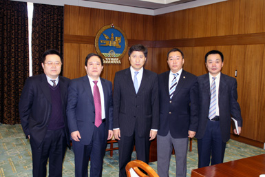 2010年1月5日上午,正在蒙古圖木爾廷—敖包鋅礦率團(tuán)慰問一線員工的王宏前總經(jīng)理,專程在在烏蘭巴托國家宮拜會了蒙古國總理蘇赫巴特爾•巴特包勒德閣下,向總理閣下匯報了中色股份在蒙企業(yè)的生產(chǎn)經(jīng)營情況,并就共同關(guān)心的話題進(jìn)行了友好會談。