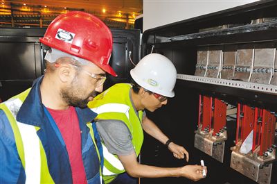 中哈兩國(guó)管理人員共同檢查磨礦車(chē)間內(nèi)機(jī)器運(yùn)行情況。