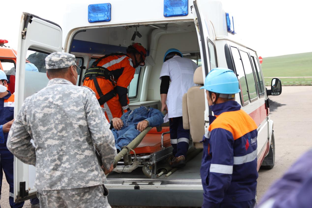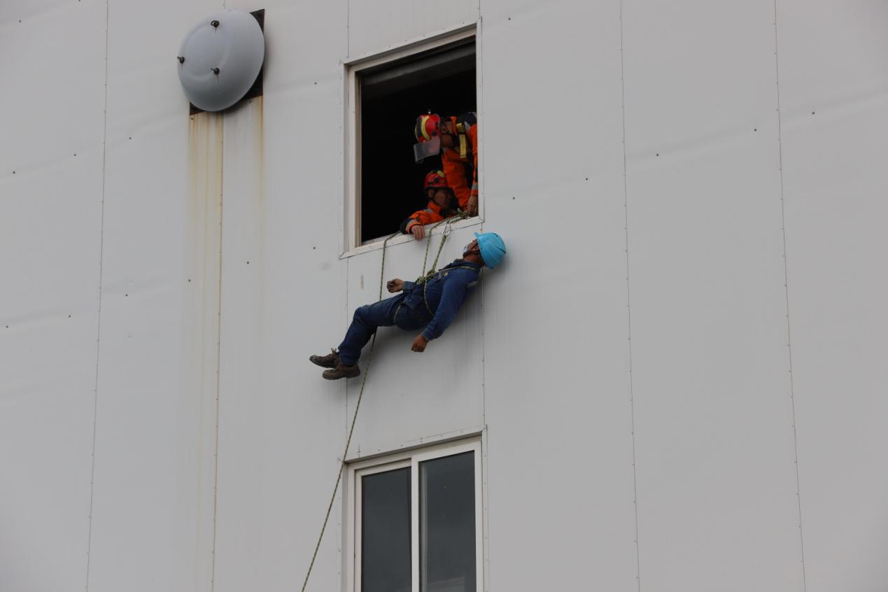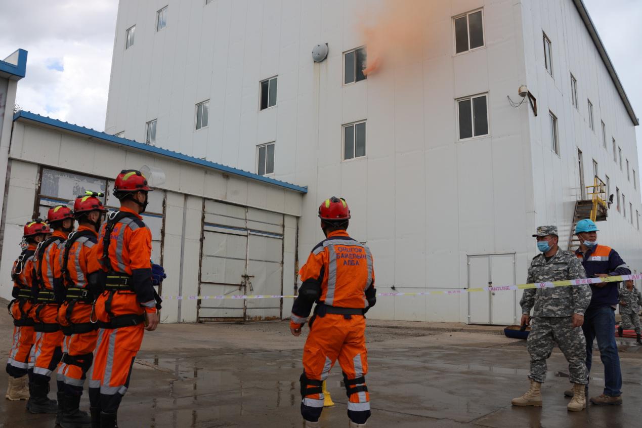 14:30,模擬鍋爐房三樓發(fā)生火災,并有員工吸入煙氣窒息昏迷事故場景。公司安全環(huán)保部經(jīng)理接到事故現(xiàn)場人員火災事故報警,迅速向公司值班領(lǐng)導報告,并啟動公司級火災事故應急救援預案,同時撥打蘇哈巴托省特殊情況局火災報警電話,請求支援;