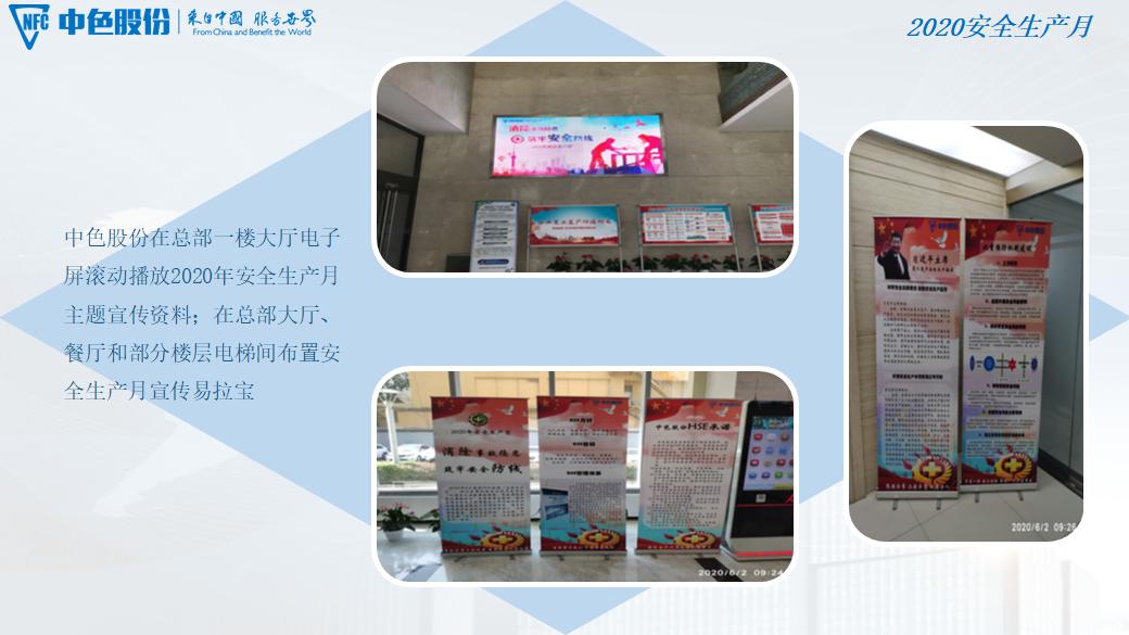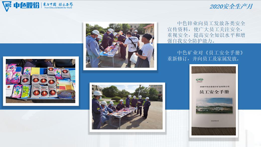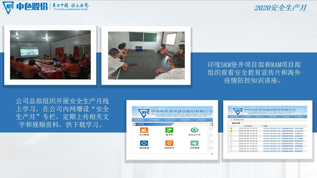 今年6月是第19個全國“安全生產(chǎn)月”,為深入貫徹落實習(xí)近平總書記關(guān)于安全生產(chǎn)重要論述,樹牢安全發(fā)展理念,弘揚安全文化,提高安全意識,中色股份總部、國際業(yè)務(wù)部和出資企業(yè)圍繞“消除安全隱患,筑牢安全防線”主題,在疫情防控常態(tài)化的特殊背景下,制定了切實可行的 “安全生產(chǎn)月”活動方案,開展了特色鮮明、豐富多樣的宣教活動,取得了實實在在的成效。