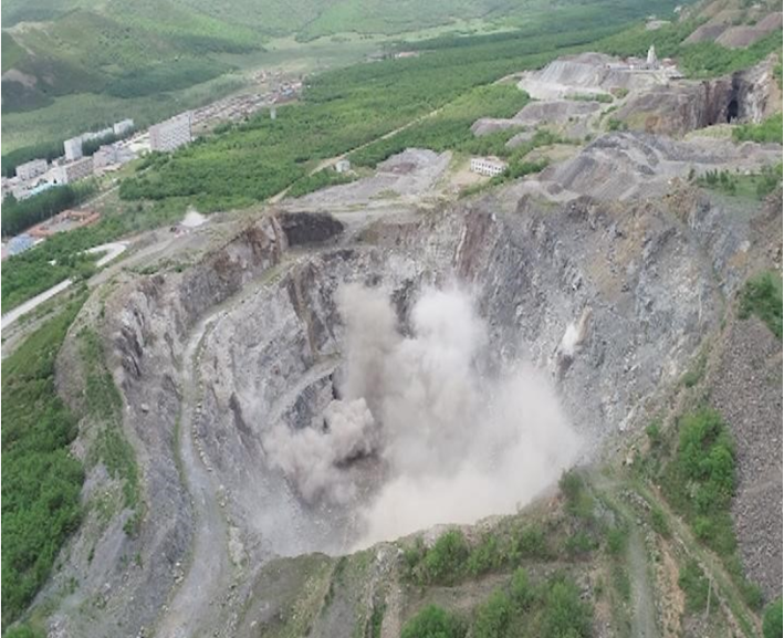 1#礦體空區(qū)起爆瞬間現(xiàn)場照片