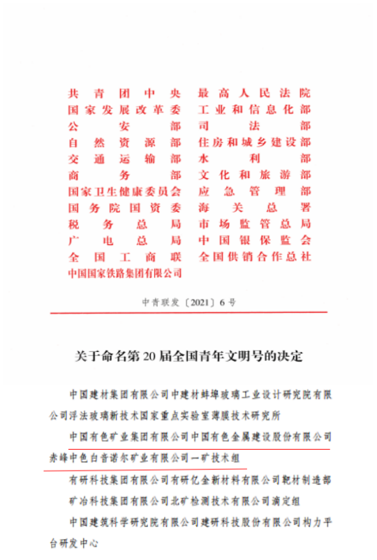 一礦技術(shù)組在召開技術(shù)研討會 中青聯(lián)發(fā)2021[6]號文件《關(guān)于命名第20屆青年文明號》摘選