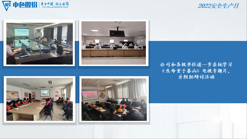 “安全生產(chǎn)月”期間,中色股份全級次通過專題研討、集中宣講、培訓(xùn)輔導(dǎo)等形式,系統(tǒng)學(xué)習(xí)《生命重于泰山——學(xué)習(xí)習(xí)近平總書記關(guān)于安全生產(chǎn)重要論述》電視專題片61場,總計4331人次參加;開展各類安全生產(chǎn)十五條措施宣貫活動64場,參與人數(shù)達7124人次。