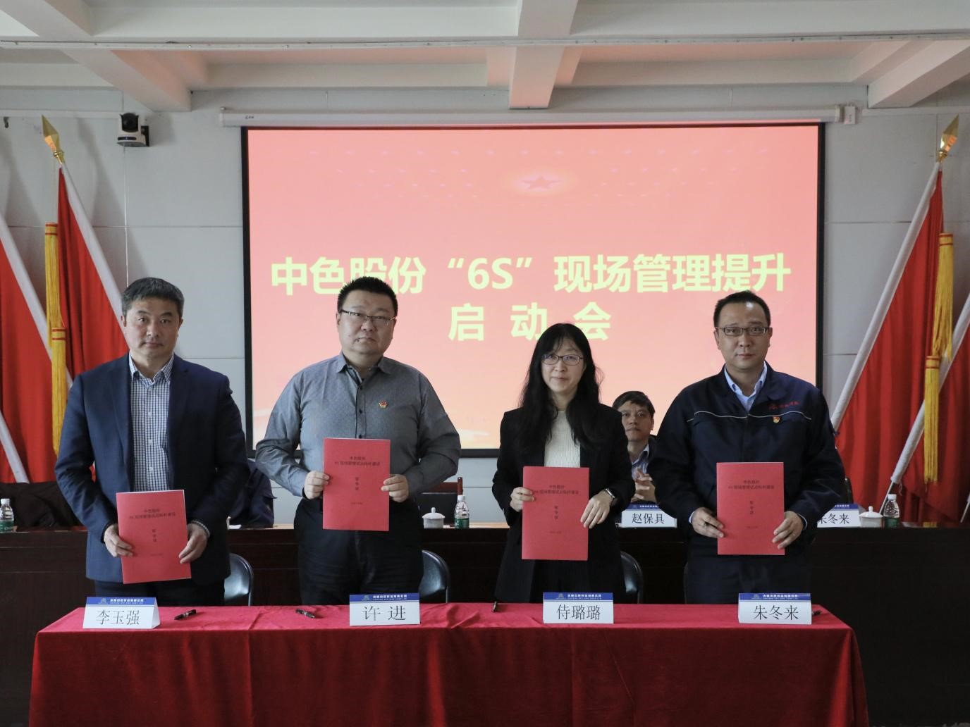 侍璐璐副總經(jīng)理代表中色股份與三家試點(diǎn)企業(yè)負(fù)責(zé)人簽訂中色股份“6S”現(xiàn)場(chǎng)管理試點(diǎn)標(biāo)桿建設(shè)軍令狀。