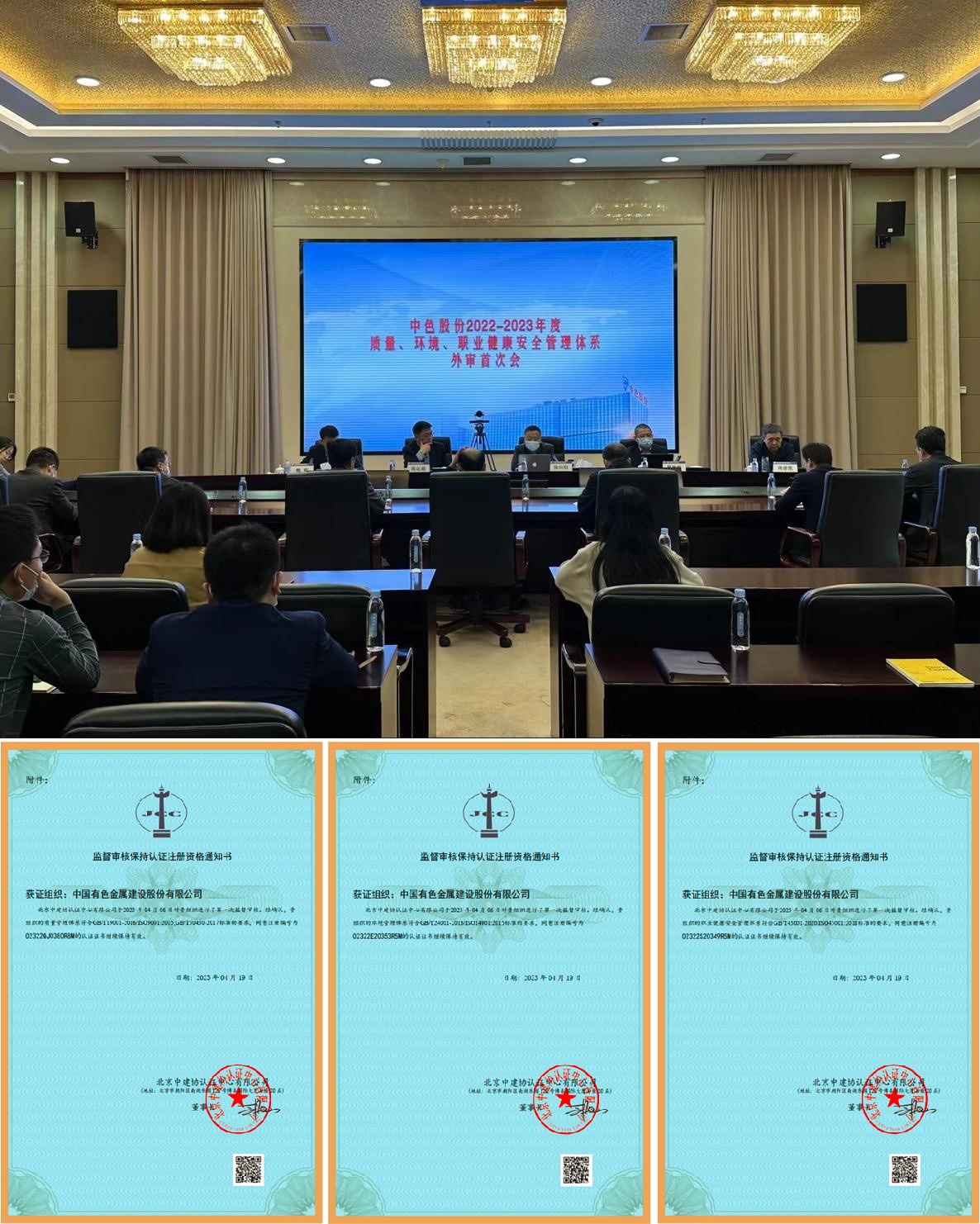2023年3月20日-4月7日,北京中建協(xié)認證中心有限公司(以下簡稱中建協(xié))對公司進行了2022-2023年度質(zhì)量、環(huán)境和職業(yè)健康安全管理體系監(jiān)督審核。經(jīng)過兩天對公司相關(guān)部門審核,中建協(xié)審核組充分肯定了公司體系運行的有效性,審核未開具不符合項,審核組一致同意推薦公司通過審核。經(jīng)中建協(xié)內(nèi)部技術(shù)評定,為公司頒發(fā)了三體系監(jiān)督審核保持認證注冊資格通知書,標志著公司順利通過了三體系監(jiān)督審核。