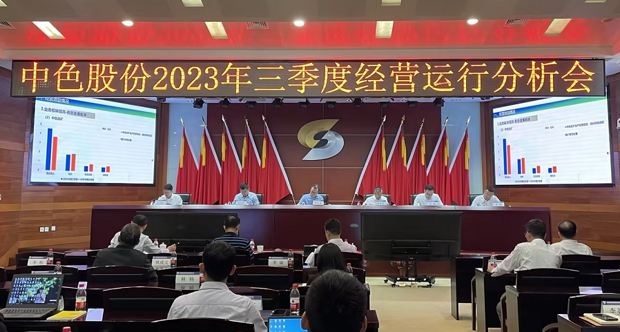 10月24日,中色股份召開三季度經(jīng)營運行分析會,傳達(dá)貫徹集團公司三季度經(jīng)營運行會會議精神,通報公司三季度經(jīng)營運行總體情況,為四季度高質(zhì)量完成全年經(jīng)營目標(biāo)作出工作部署。中色股份黨委副書記、總經(jīng)理秦軍滿作總結(jié)講話,黨委委員、財務(wù)總監(jiān)朱國勝通報了三季度主要財務(wù)指標(biāo)完成情況、生產(chǎn)經(jīng)營情況和重點工作進展,黨委委員、副總經(jīng)理劉建輝主持會議。