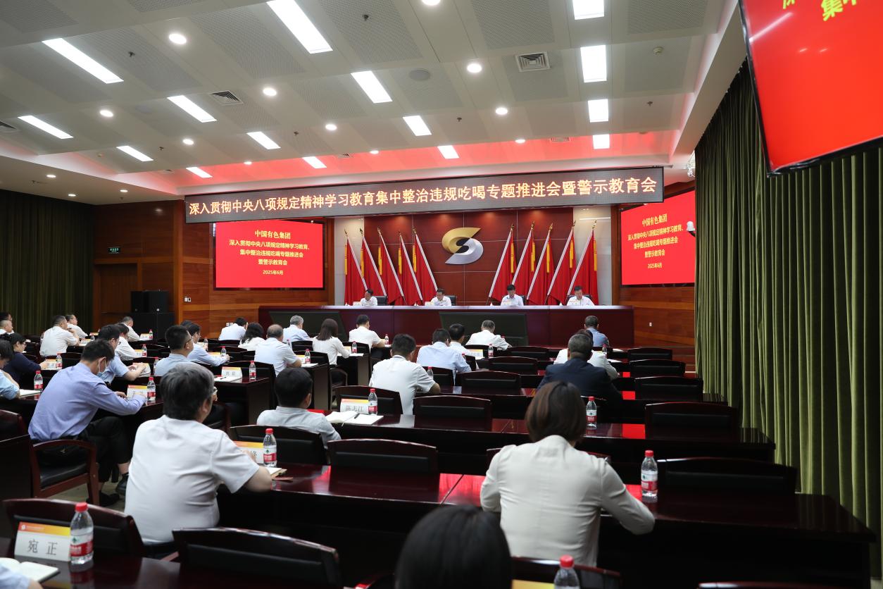 6月18日,中國有色集團(tuán)黨委召開深入貫徹中央八項(xiàng)規(guī)定精神學(xué)習(xí)教育、集中整治違規(guī)吃喝專題推進(jìn)會(huì)暨警示教育大會(huì),再學(xué)習(xí)再領(lǐng)會(huì)習(xí)近平總書記關(guān)于加強(qiáng)黨的作風(fēng)建設(shè)的重要論述,貫徹落實(shí)國務(wù)院國資委黨委國資央企集中整治違規(guī)吃喝專題推進(jìn)會(huì)精神,集中通報(bào)典型案例,開展警示教育,對(duì)全系統(tǒng)開展集中整治違規(guī)吃喝進(jìn)行專題部署。集團(tuán)公司黨委書記、董事長文崗主持會(huì)議并講話,黨委委員、總會(huì)計(jì)師安宜傳達(dá)習(xí)近平總書記關(guān)于加強(qiáng)黨的作風(fēng)建設(shè)的重要論述及國資委黨委會(huì)議精神,黨委委員、紀(jì)委書記、學(xué)習(xí)教育工作專班主任徐鋒傳達(dá)中央層面公開通報(bào)的違規(guī)吃喝典型案例并通報(bào)集團(tuán)公司查處的違反中央八項(xiàng)規(guī)定精神典型案例。大會(huì)還組織集中觀看了有關(guān)專題警示教育片。