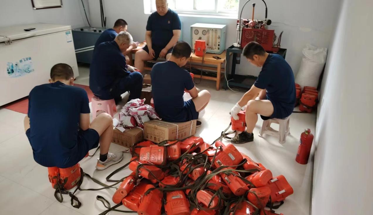 中色紅透山救護(hù)隊青年黨員正在維修井下自救器