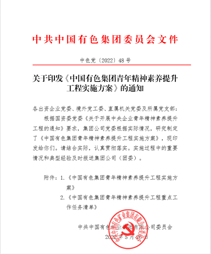 1.《中國有色集團青年精神素養(yǎng)提升工程實施方案》