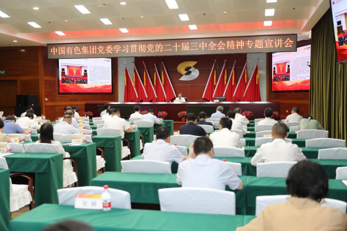 按照中央關(guān)于認(rèn)真學(xué)習(xí)宣傳貫徹黨的二十屆三中全會(huì)精神的有關(guān)部署和國(guó)資委黨委要求,根據(jù)集團(tuán)公司黨委安排,8月14日,中國(guó)有色集團(tuán)黨委召開學(xué)習(xí)貫徹黨的二十屆三中全會(huì)精神專題宣講會(huì)。中國(guó)有色集團(tuán)黨委副書記、總經(jīng)理張晉軍作專題宣講,強(qiáng)調(diào)要更加深刻領(lǐng)悟“兩個(gè)確立”的決定性意義,不斷增強(qiáng)“四個(gè)意識(shí)”、堅(jiān)定“四個(gè)自信”、做到“兩個(gè)維護(hù)”,持續(xù)深化黨的二十屆三中全會(huì)精神學(xué)習(xí)領(lǐng)會(huì)、貫徹落實(shí),牢記“國(guó)之大者”,進(jìn)一步增強(qiáng)核心功能,提升核心競(jìng)爭(zhēng)力,為以中國(guó)式現(xiàn)代化全面推進(jìn)強(qiáng)國(guó)建設(shè)、民族復(fù)興偉業(yè)作出新的更大貢獻(xiàn)。中國(guó)有色集團(tuán)黨委委員、紀(jì)委書記范圣權(quán)主持會(huì)議。