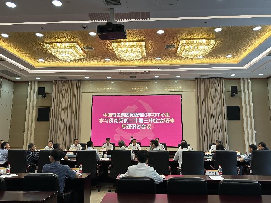 根據(jù)黨中央關(guān)于學(xué)習(xí)貫徹黨的二十屆三中全會精神的重要部署,以及國務(wù)院國資委黨委有關(guān)工作要求,8月30日,中國有色集團黨委召開理論學(xué)習(xí)中心組黨的二十屆三中全會精神專題學(xué)習(xí)研討會議,集中學(xué)習(xí)黨的二十屆三中全會精神,重溫習(xí)近平總書記對集團公司三次重要指示批示精神,就集團公司全面抓好貫徹落實,加快推動高質(zhì)量發(fā)展開展集中研討。中國有色集團黨委書記、董事長主持學(xué)習(xí),領(lǐng)學(xué)三中全會精神重點內(nèi)容并作研討重點發(fā)言,黨委副書記、總經(jīng)理領(lǐng)學(xué)習(xí)近平總書記重要指示批示精神并作研討重點發(fā)言,集團公司領(lǐng)導(dǎo)班子成員參加學(xué)習(xí)研討。