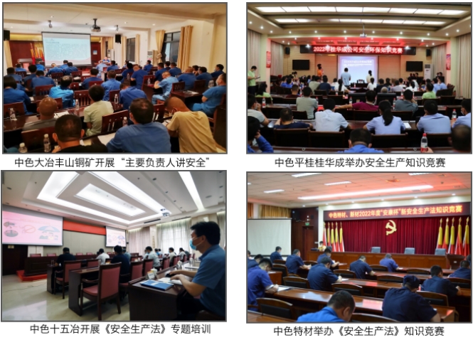 中國有色集團(tuán)積極響應(yīng)全國安全月組委會辦公室有關(guān)要求,組織廣大干部職工參與“新安法知多少”網(wǎng)絡(luò)知識競賽,以賽促學(xué)、學(xué)賽結(jié)合,宣傳普及安全生產(chǎn)法律知識,提高全員安全意識和安全素養(yǎng),截至6月15日,已有近1萬人參與競賽活動。同時,各出資企業(yè)結(jié)合實(shí)際,組織開展了形式多樣、內(nèi)容豐富的《安全生產(chǎn)法》宣傳教育活動,扎實(shí)推進(jìn)安全宣傳進(jìn)企業(yè)、進(jìn)家庭。