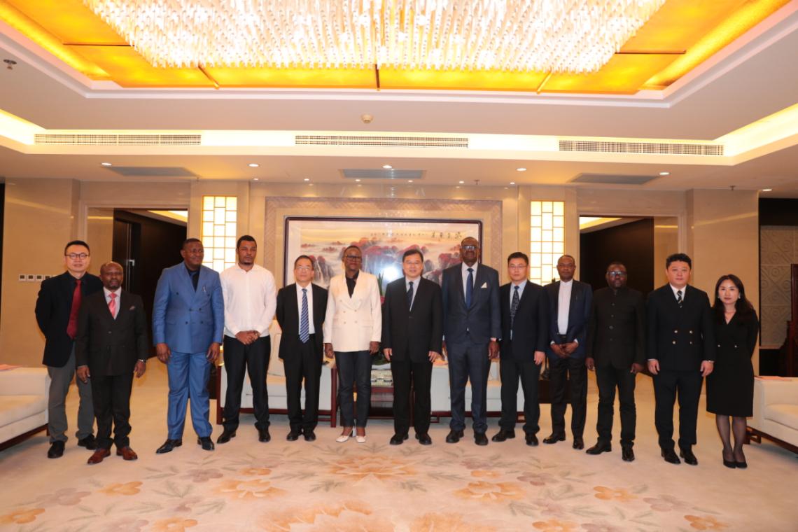 奚正平董事長對恩桑巴部長一行的到訪表示熱烈歡迎,簡要介紹了中國有色集團的整體情況和在剛出資企業(yè)的發(fā)展狀況,并對剛果(金)政府長期以來給予中國有色集團的關(guān)心支持表示衷心感謝。他表示,中國有色集團是國務(wù)院國資委直接管理的大型中央企業(yè),主要從事有色金屬礦產(chǎn)的開發(fā)和材料的深加工,擁有從探礦、采礦、選礦、冶煉到材料加工的完整產(chǎn)業(yè)鏈。剛果(金)是中國有色集團在中南部非洲地區(qū)重點深耕的國家,已投資設(shè)立了6家出資企業(yè),開展銅鈷資源的開發(fā)與加工業(yè)務(wù),擁有當?shù)毓蛦T5000余人。他指出,在剛果(金)政府的大力支持下,隨著與杰卡明公司合作開發(fā)的迪茲瓦項目和剛波夫項目的達產(chǎn),中國有色集團在剛果(金)地區(qū)的經(jīng)營業(yè)績?nèi)〉昧诉M一步提升,為當?shù)貏?chuàng)造了更多的利稅和就業(yè),希望部長閣下本次訪問中國有色集團能夠進一步推動雙方在各個領(lǐng)域的合作。