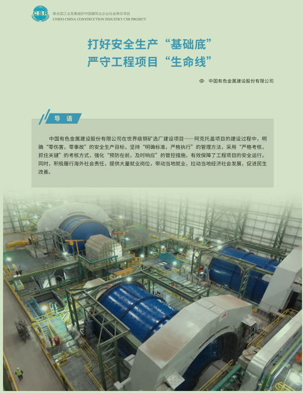 此次安全生產(chǎn)優(yōu)秀案例的入選,充分體現(xiàn)了聯(lián)合國工業(yè)發(fā)展組織對中國有色集團(tuán)以及中色股份在項(xiàng)目建設(shè)中重視安全管理、踐行社會責(zé)任的充分肯定,也對中國有色集團(tuán)及中色股份進(jìn)一步擴(kuò)大海外工程業(yè)務(wù)發(fā)展有著重要的意義。下一步,中國有色集團(tuán)將持續(xù)深刻把握好、領(lǐng)會好習(xí)近平總書記重要指示精神,始終堅(jiān)持安全是“1”的理念,以“時(shí)時(shí)放心不下”的責(zé)任感和極端認(rèn)真負(fù)責(zé)的擔(dān)當(dāng)精神全面落實(shí)落細(xì)安全生產(chǎn)各項(xiàng)管控措施,營造安全文化,打造安全品牌,強(qiáng)化價(jià)值創(chuàng)造,履行社會責(zé)任,推動和支持海外出資企業(yè)和工程項(xiàng)目再創(chuàng)佳績,實(shí)現(xiàn)安全綠色高質(zhì)量發(fā)展。