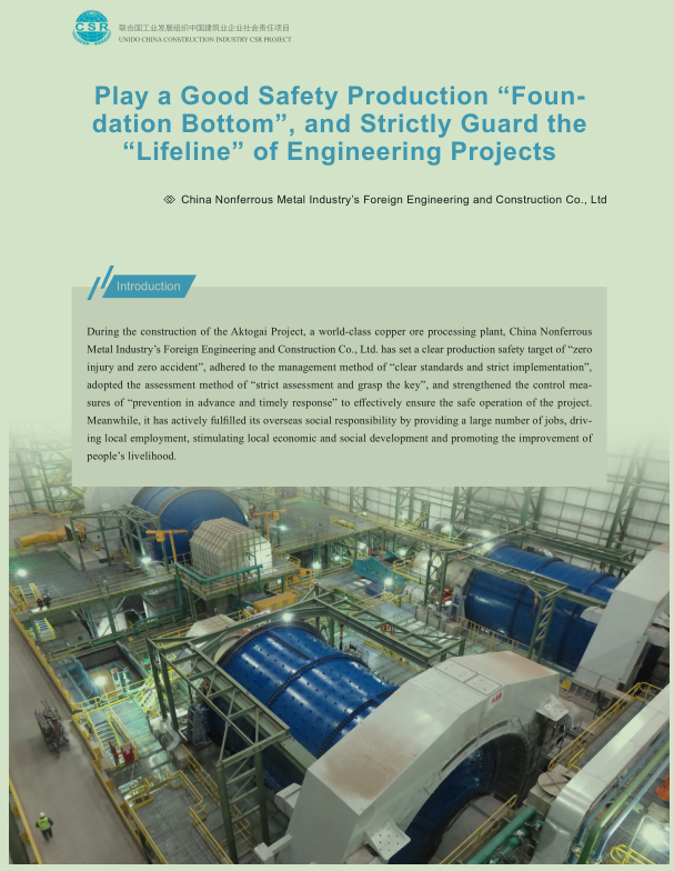 近日,聯(lián)合國工業(yè)發(fā)展組織平臺網(wǎng)站(https://open.unido.org/)公布了優(yōu)秀項(xiàng)目管理案例。其中,由中國有色集團(tuán)所屬出資企業(yè)中色股份承建的哈薩克斯坦阿克托蓋銅選廠擴(kuò)建項(xiàng)目安全管理實(shí)踐作為中國建筑業(yè)企業(yè)社會責(zé)任項(xiàng)目(項(xiàng)目ID:180270)優(yōu)秀案例之一入選并在網(wǎng)站上進(jìn)行宣傳展示。聯(lián)合國工業(yè)發(fā)展組織中國建筑業(yè)企業(yè)社會責(zé)任項(xiàng)目是由聯(lián)合國工業(yè)發(fā)展組織(UNIDO)發(fā)起并提供資金和技術(shù)支持、商務(wù)部中國國際經(jīng)濟(jì)技術(shù)交流中心(CICETE)授權(quán)、中國建筑業(yè)協(xié)會(CCIA)牽頭、北京中建協(xié)認(rèn)證中心承辦的國際合作項(xiàng)目。