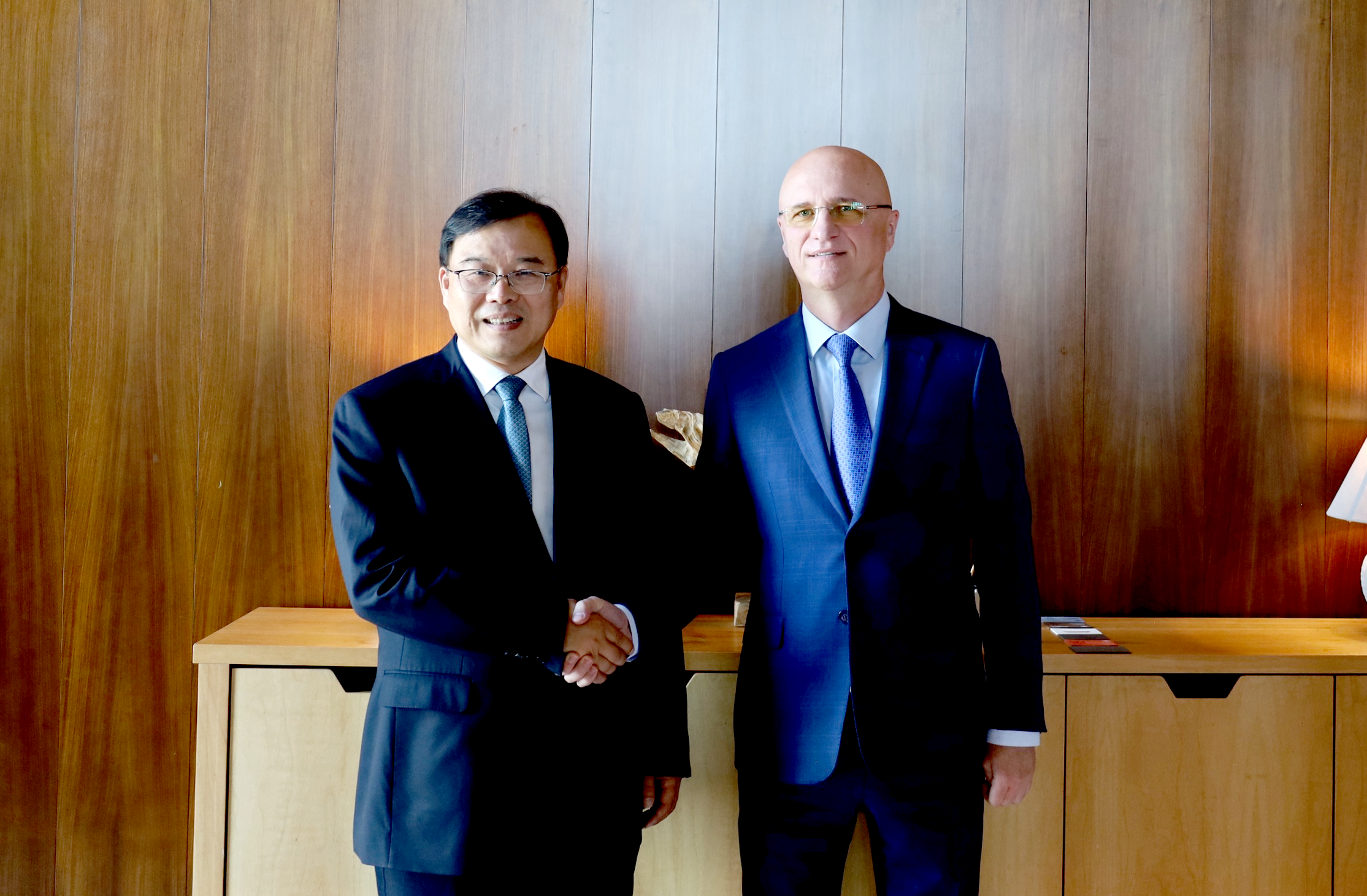 拜會哈薩克斯坦政府首腦前,奚正平董事長還于6月2日,拜會了中國駐哈薩克斯坦大使張霄。向張霄大使介紹了中國有色集團(tuán)在哈開展的業(yè)務(wù)及擬簽約項目情況,對中國駐哈使館長期以來給予的支持表示感謝。奚正平董事長表示,中國有色集團(tuán)將持續(xù)發(fā)揮橋梁紐帶作用,為深化中哈友誼和兩國經(jīng)濟(jì)社會發(fā)展做出更大貢獻(xiàn)。張霄大使充分肯定了中國有色集團(tuán)在哈重點(diǎn)項目上取得的重要進(jìn)展,指出當(dāng)前中哈關(guān)系、中國-中亞關(guān)系正處于快速升溫階段,兩國高層交往頻繁,充分體現(xiàn)了中亞國家向東看、加速與中國合作的趨勢,為項目的推進(jìn)提供了堅實(shí)基礎(chǔ)和良好契機(jī)。張霄大使還就在哈經(jīng)營需關(guān)注的政策支持、環(huán)保要求及合規(guī)經(jīng)營等方面提出了建議。