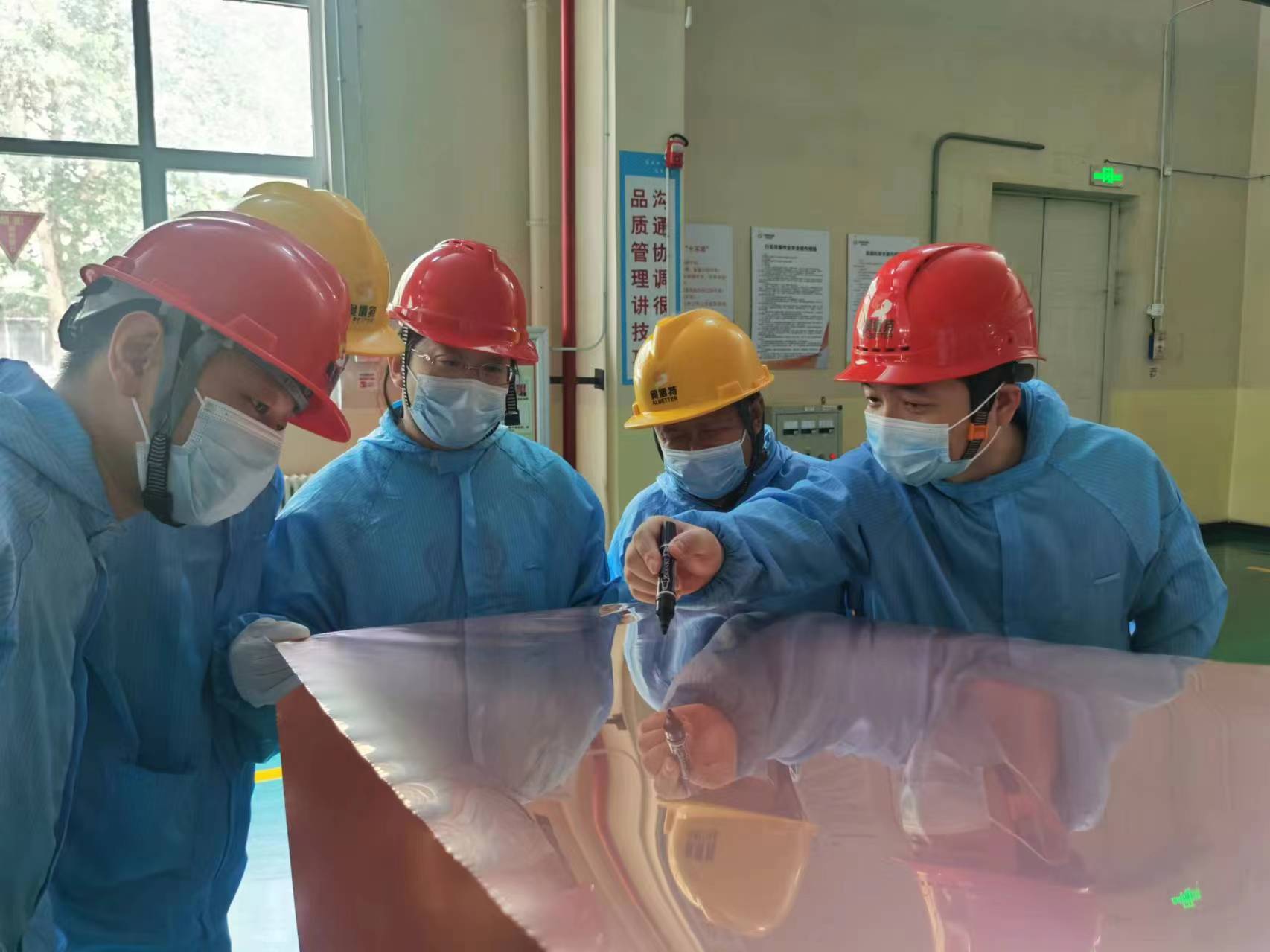 圖|中色奧博特銅箔黨支部課題攻關(guān)小組成員查看母材表面質(zhì)量