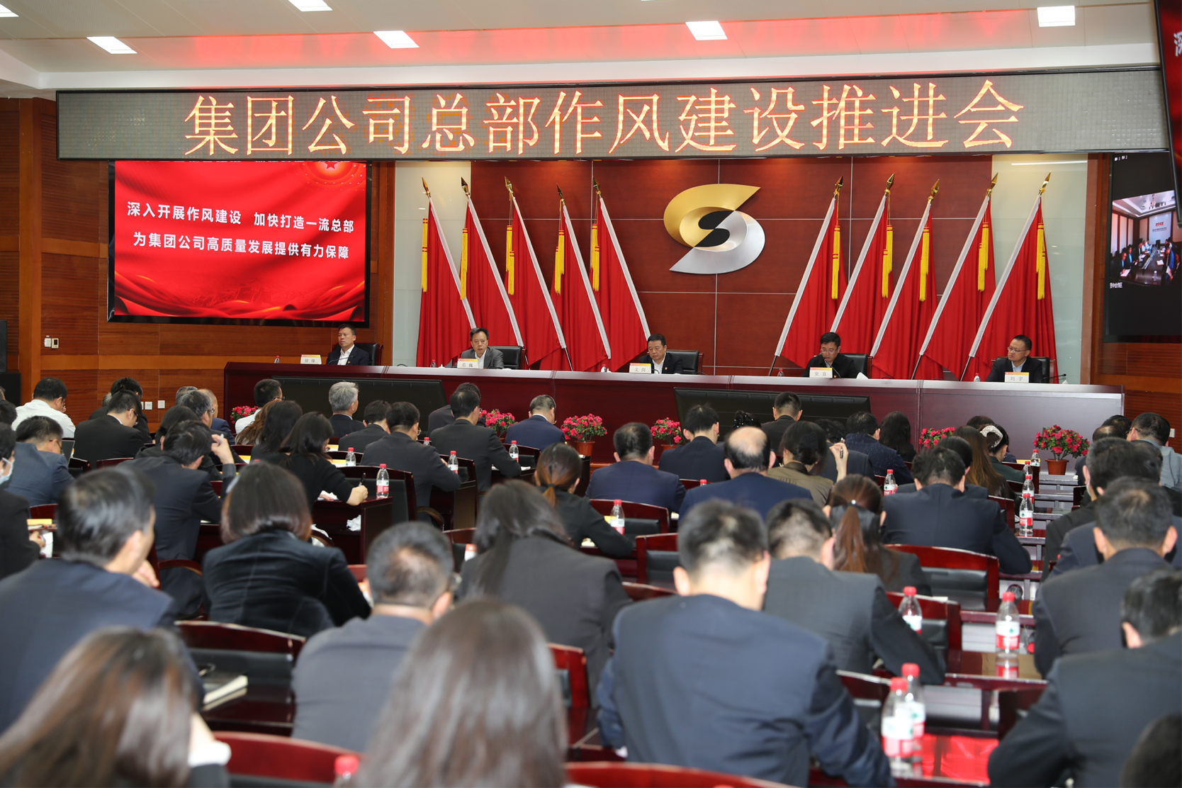 會議以現(xiàn)場和視頻相結合的形式召開,集團公司領導班子成員、高級管理人員和總部全體干部職工參加會議。