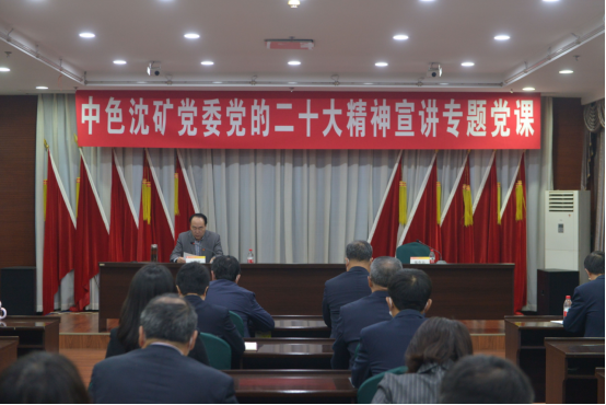 11月17日,按照集團公司黨委統(tǒng)一部署,中國有色集團出資企業(yè)沈陽礦業(yè)投資有限公司(簡稱:中色沈礦)黨委召開黨的二十大精神宣講專題黨課會議,中色沈礦黨委書記、董事長王鎖寬以《以二十大精神為行動綱領(lǐng) 、推動沈礦綠色高質(zhì)量發(fā)展,凝心聚力在新征程中展現(xiàn)新?lián)斬暙I新力量》為題,為全級次廣大黨員干部講授專題黨課,宣貫黨的二十大精神,對走好走穩(wěn)中色沈礦綠色高質(zhì)量發(fā)展之路作出部署,并就學習落實好二十大精神提出要求。