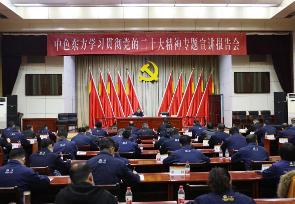 為深入學(xué)習(xí)宣傳貫徹黨的二十大精神,根據(jù)寧夏自治區(qū)黨委統(tǒng)一部署,11月17日,自治區(qū)宣講團(tuán)成員、自治區(qū)政協(xié)副主席馮志強(qiáng)在中國有色集團(tuán)出資企業(yè)中色(寧夏)東方集團(tuán)有限公司(簡稱:中色東方)作黨的二十大精神專題宣講報(bào)告。中色東方黨委書記、董事長李春光主持,石嘴山市政協(xié)主席魏和清出席會(huì)議。
