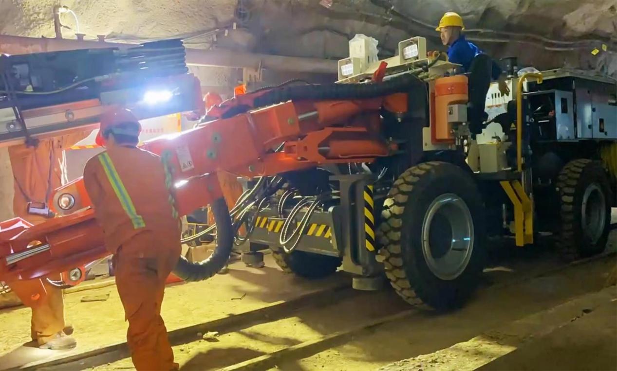 圖為中色大冶銅綠山礦井下鑿巖臺車正在組裝