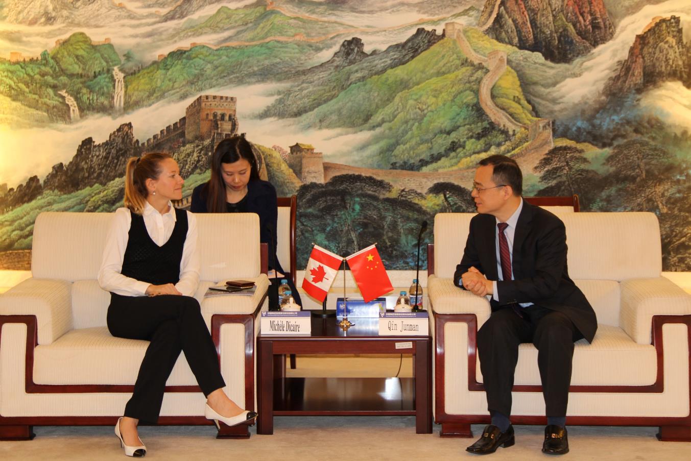 On 24 October, NFC vice-president Qin Junman met with Quebec enterprise delegation led by Ms. Michèle Dicaire, first secretary of Canadian Embassy to China and commercial director of Bureau of Quebec.