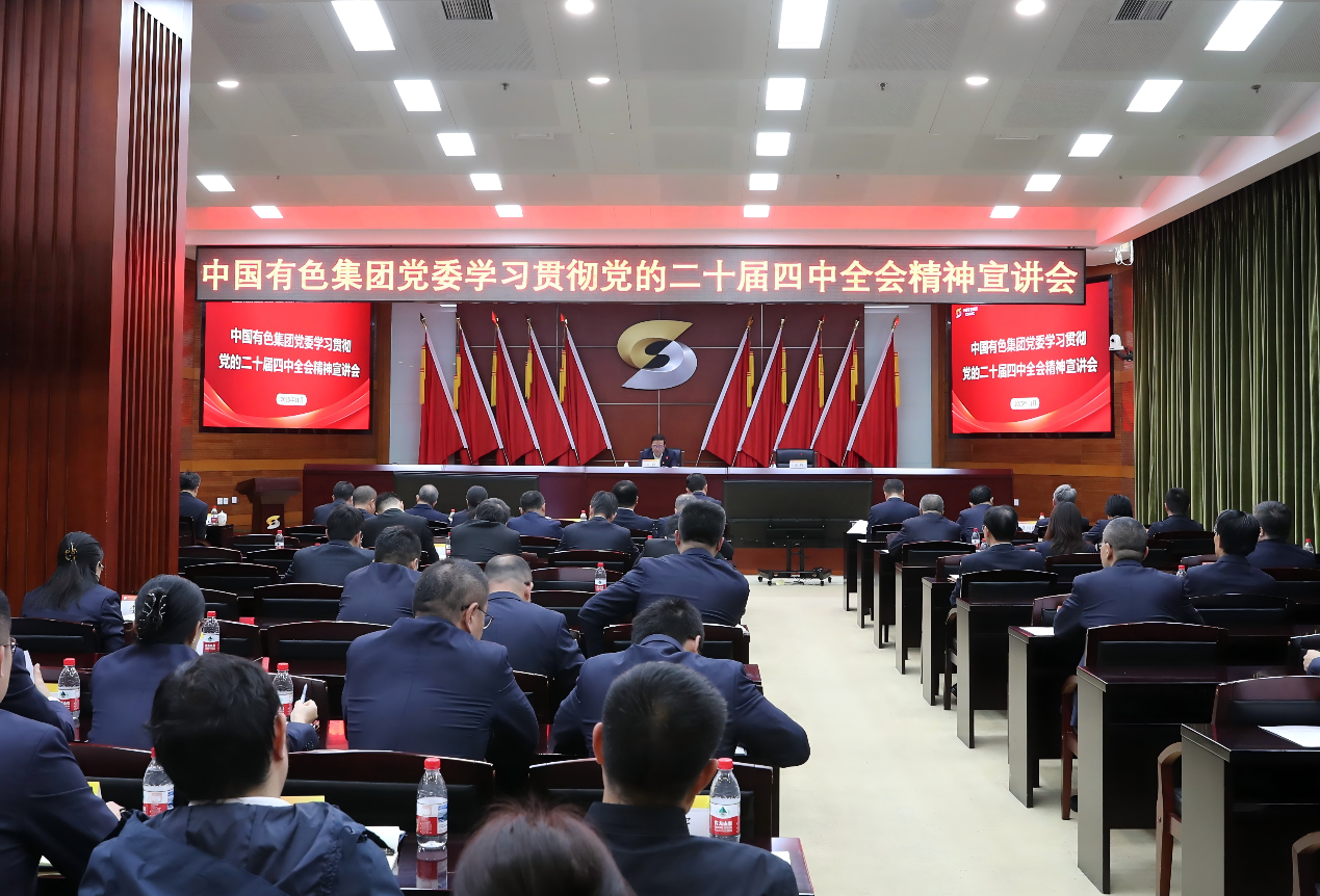 中國(guó)有色集團(tuán)黨委召開(kāi)學(xué)習(xí)貫徹黨的二十屆四中全會(huì)精神宣講會(huì)議,全會(huì)審議通過(guò)的《中共中央關(guān)于制定國(guó)民經(jīng)濟(jì)和社會(huì)發(fā)展第十五個(gè)五年規(guī)劃的建議》,為推動(dòng)高質(zhì)量發(fā)展、推進(jìn)中國(guó)式現(xiàn)代化提供了科學(xué)行動(dòng)指南。