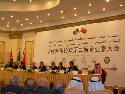 中阿企業(yè)家大會是中阿合作論壇框架下的常設(shè)機(jī)構(gòu),每兩年舉辦一次,首屆“中阿合作論壇企業(yè)家大會”于2005年4月在北京舉行,全國政協(xié)主席賈慶林出席并發(fā)表了重要講話,在中阿各國企業(yè)間引起了熱烈反響。此次在安曼召開的第二屆中阿企業(yè)家大會,得到了雙方政府部門和企業(yè)家的高度重視,全國政協(xié)副主席羅豪才、中國貿(mào)促會會長萬季飛、中國商務(wù)部部長助理陳健以及約旦副首相兼財政大臣法里茲、阿拉伯企業(yè)家聯(lián)合會主席塔巴等出席大會開幕式并致辭,近千名中阿企業(yè)家參加了會議。約旦國王阿卜杜拉二世在6月18日開幕式后專門會見了由羅豪才先生帶隊的中國企業(yè)家代表團(tuán)部分成員一行二十余人,王宏前總經(jīng)理作為中方企業(yè)家代表謁見了國王陛下。
