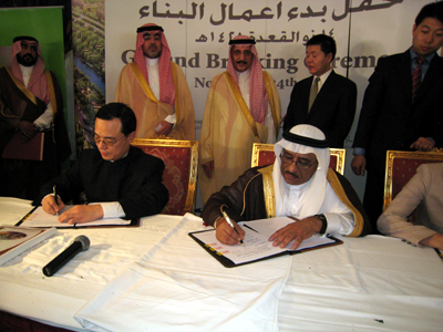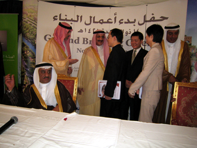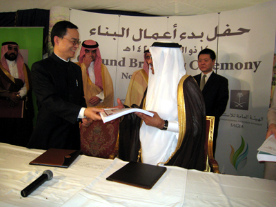 2007年11月24日, 沙特吉贊經(jīng)濟(jì)區(qū)舉行隆重開工典禮,沙特吉贊區(qū)埃米爾穆罕默德王子殿下、沙特投資總署署長達(dá)巴赫、中國駐沙特大使館臨時(shí)代辦王克儉、商務(wù)參贊李雁林出席了典禮。中色股份公司副總經(jīng)理秦軍滿率團(tuán)出席了典禮。