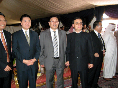 秦軍滿副總經(jīng)理與中國駐沙特大使館臨時(shí)代辦王克儉、商務(wù)參贊李雁林等在一起