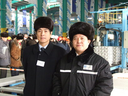 在會(huì)談中,羅濤董事長就哈鋁項(xiàng)目一期提前順利投產(chǎn)向伊博拉吉莫夫總裁表示祝賀,稱在投產(chǎn)儀式上我們共同見證了雙方真誠合作的碩果,這是向哈薩克斯坦獨(dú)立16周年國慶(12月16日)的最好獻(xiàn)禮。伊博拉吉莫夫總裁也向羅濤董事長和王宏前總經(jīng)理表示祝賀,并高興地指出:這是我們共同的工廠,是我們共同的節(jié)日。他對中色股份作為總承包商在哈鋁項(xiàng)目所作出的重大貢獻(xiàn)表示感謝,贊揚(yáng)中色股份參加哈鋁項(xiàng)目建設(shè)的管理團(tuán)隊(duì)、工程技術(shù)人員和施工隊(duì)伍是最優(yōu)秀的。伊博拉吉莫夫總裁還指出,由于中色股份在哈鋁項(xiàng)目上的出色表現(xiàn),哈鋁公司已經(jīng)與中色股份簽訂了哈鋁項(xiàng)目二期供應(yīng)合同,并將繼續(xù)與中色股份在未來進(jìn)行更多的合作。