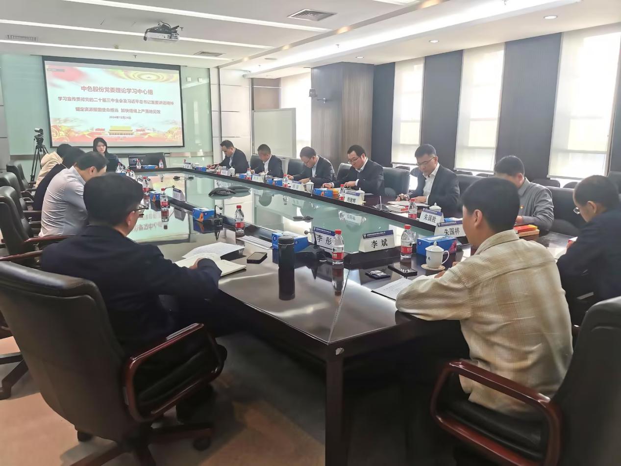 為深入學(xué)習貫徹黨的二十屆三中全會精神,進一步推動企業(yè)全面深化改革,12月23日,中色股份黨委以“錨定資源報國使命擔當,加快增儲上產(chǎn)落地見效”為主題,開展中心組學(xué)習研討。集團公司黨委委員、副總經(jīng)理,中色股份黨委書記、董事長劉宇同志主持會議并作工作部署。