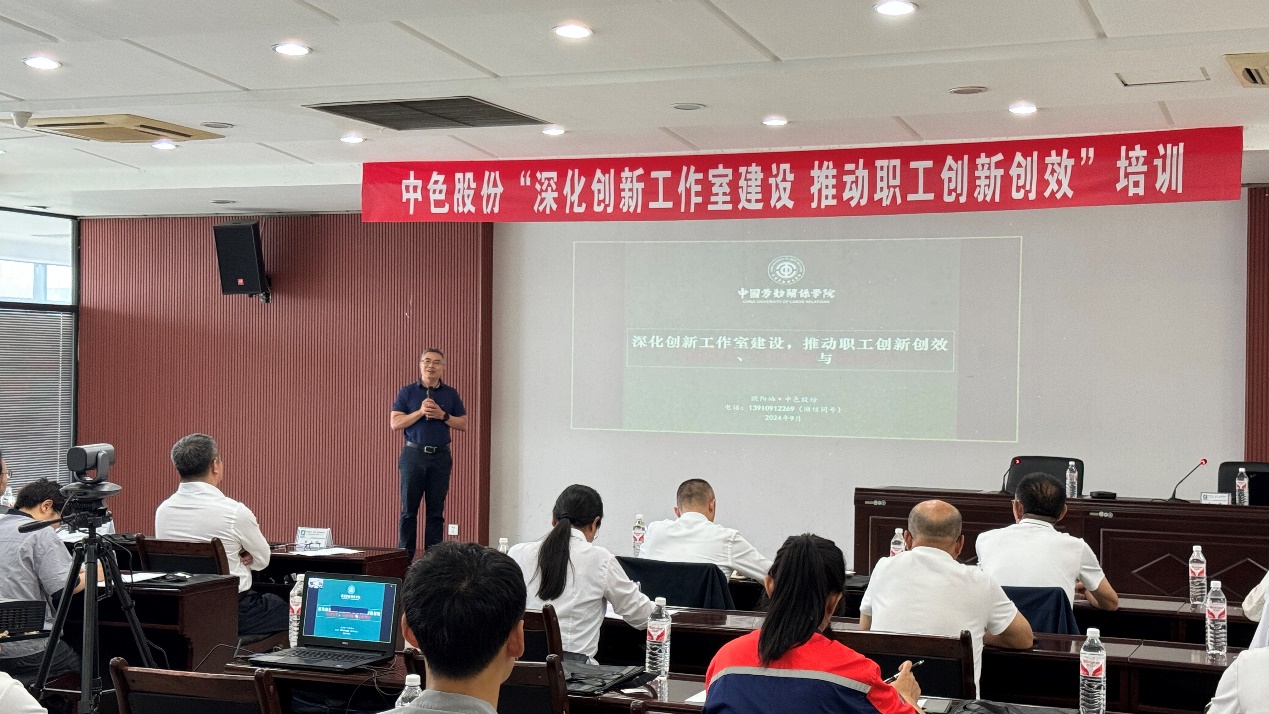 中國勞動關系學院新時代產(chǎn)業(yè)工人教育培訓中心副主任歐陽袖博士首先圍繞“深化創(chuàng)新工作室建設,推動職工創(chuàng)新創(chuàng)效”開展培訓。他以企業(yè)的實際案例,從創(chuàng)新工作室的功能定位、面臨問題、經(jīng)驗做法和工作方向等,進行了系統(tǒng)講解和具體分析,對企業(yè)創(chuàng)新工作室建設開展針對性指導。