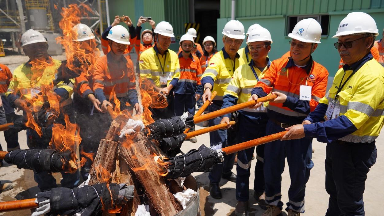 2024年9月23日12時(shí)29分,在印尼總統(tǒng)宣布阿曼銅冶煉項(xiàng)目正式啟動(dòng)后,印尼阿曼銅冶煉項(xiàng)目閃速熔煉爐一次點(diǎn)火成功。中色股份總經(jīng)理秦軍滿(mǎn)與阿曼礦業(yè)公司烏金先生,阿古斯先生,以及董事納文先生及其團(tuán)隊(duì)一同出席了點(diǎn)火儀式。