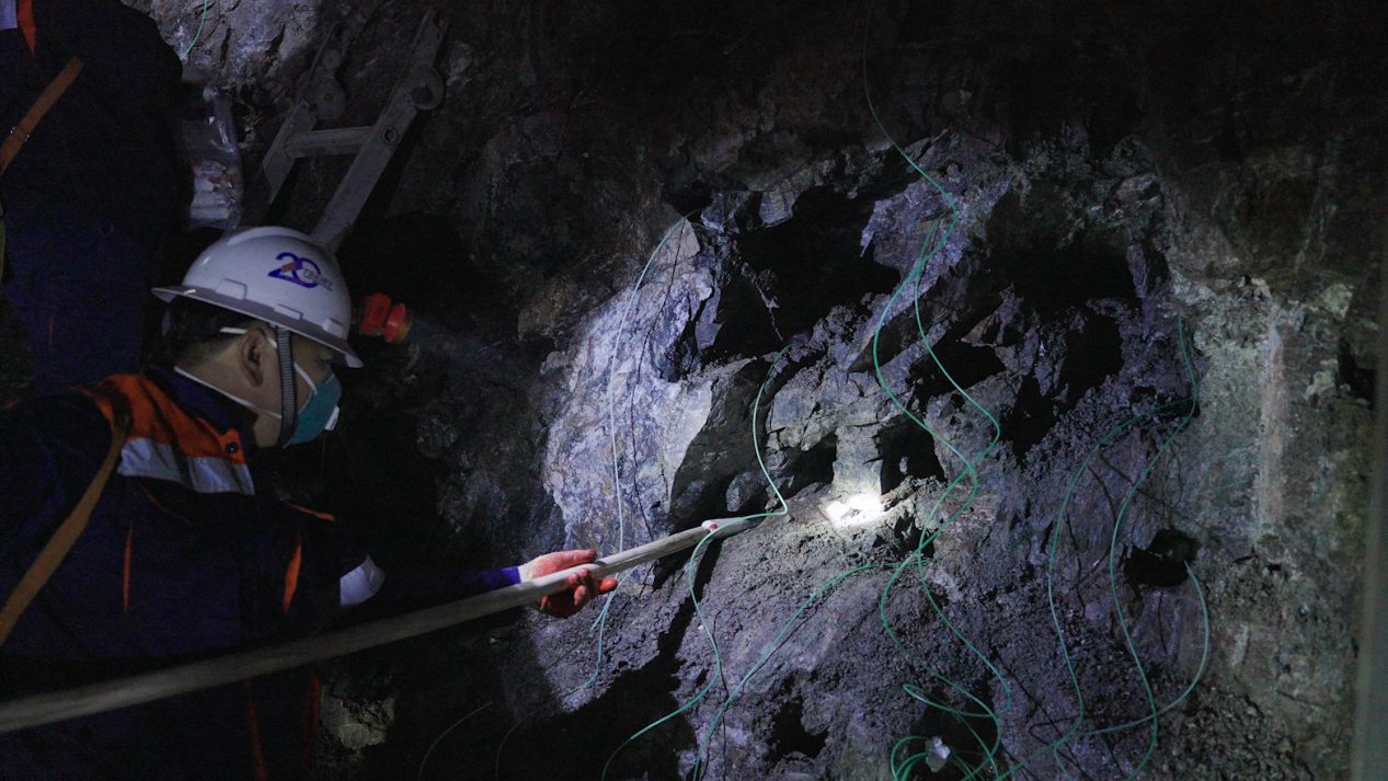 安全是攻堅的命門。相比于露天礦的“一目了然”,地下采礦則危機四伏,給施工和管理帶來更大挑戰(zhàn)。敖包鋅礦投產(chǎn)以來,在環(huán)保、安全生產(chǎn)、員工健康等方面投入巨大,從未發(fā)生事故,不能因轉(zhuǎn)型風(fēng)險而前功盡棄?!?/span>由于露天兩端幫揭露有破碎帶,導(dǎo)致礦體上盤邊坡不穩(wěn),邊坡治理的每一步都膽戰(zhàn)心驚,碎石隨時可能墜落,造成塌方和人員傷亡,”阮琰文和一名地質(zhì)工程師等管理人員組成夜間檢查小組,開啟了24小時現(xiàn)場巡查,“不去礦區(qū)看看都睡不著,要不然放心不下。”